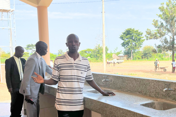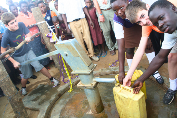 The next highlight of our 2015 trip was the ribbon-cutting for the new “bore hole” that we had drilled to bring water to the campus for the very first time. This hand-pumped well allowed staff, students and local villagers to fill their plastic jerrycans after a much shorter walk than the previous nearest well. Today, we have a solar-powered electric pump and water tower that feeds water to taps throughout the campus, bringing the convenience of running water to the area for the first time.