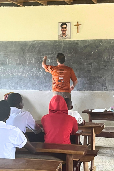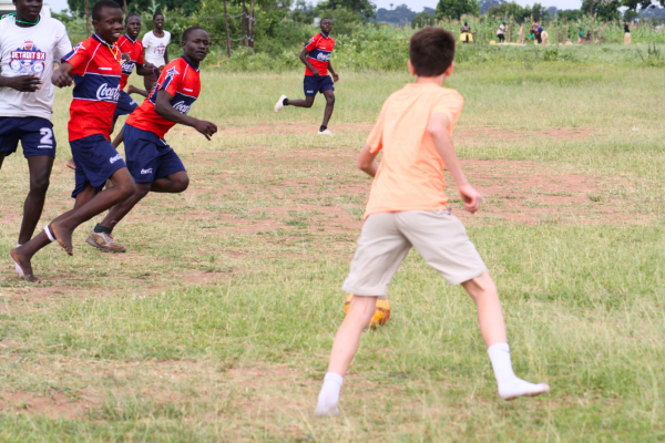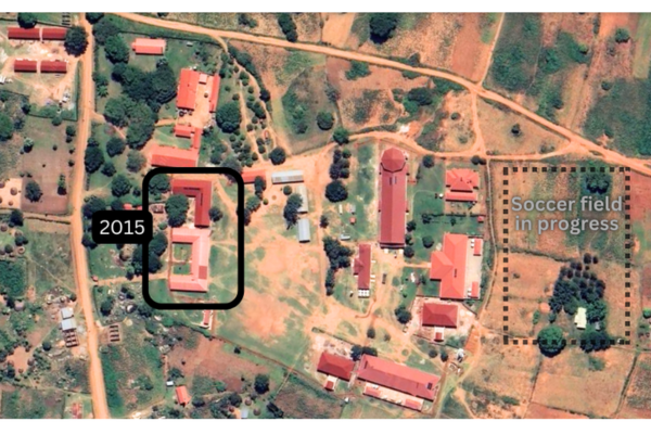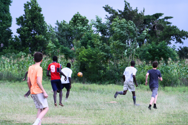 In 2015, the center of the campus was dominated by the primary school and a soccer field that was more bare earth than grass. Sam and Nate joined the boys of JPSS for a friendly soccer match… but only after they shed their shoes to match the competition.