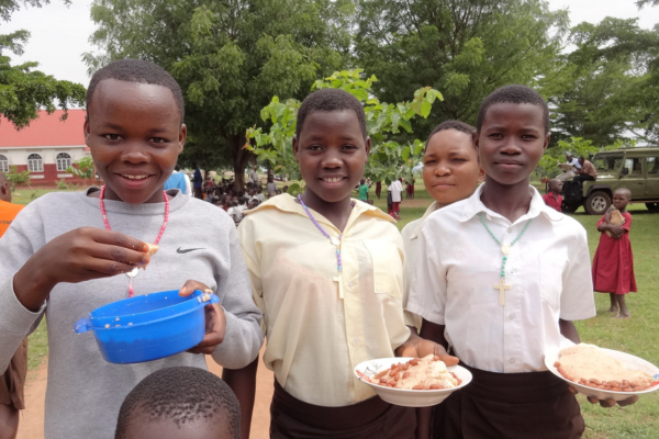 As lunch time arrived on that hot day in June 2015, we watched the students line up in the midday sun for a simple meal of beans and posho, prepared over an open charcoal fire in a tiny, smoky brick kitchen. After they picked up their food, the students sat on the ground or on the large rocks that punctuate the campus, hoping to find some shade.
