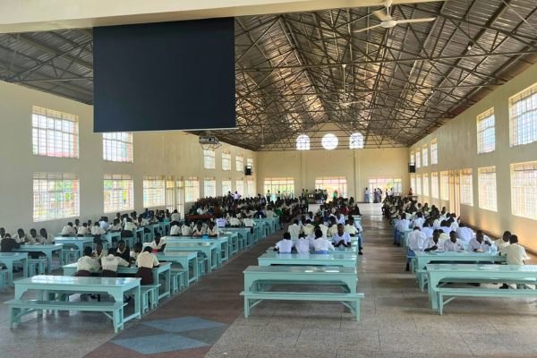The impressive building rises above the surrounding rural landscape of fields, mud huts and single-story buildings of sun-baked clay bricks. Also known as the Multi-Purpose Building (MPB), Berrigan Hall accommodates school assemblies, national testing, concerts and more.