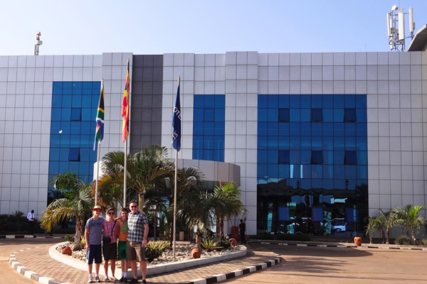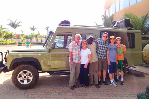 The whole Comerford family went on this adventure – Liz and I along with our two teenage boys – Sam (then 14) and Nate (then 13). After two long flights and 20 hours of travel, we were picked up at the Entebbe airport by Denis, the Berrigan’s friend and long-time driver for every trip to Uganda over the years.
