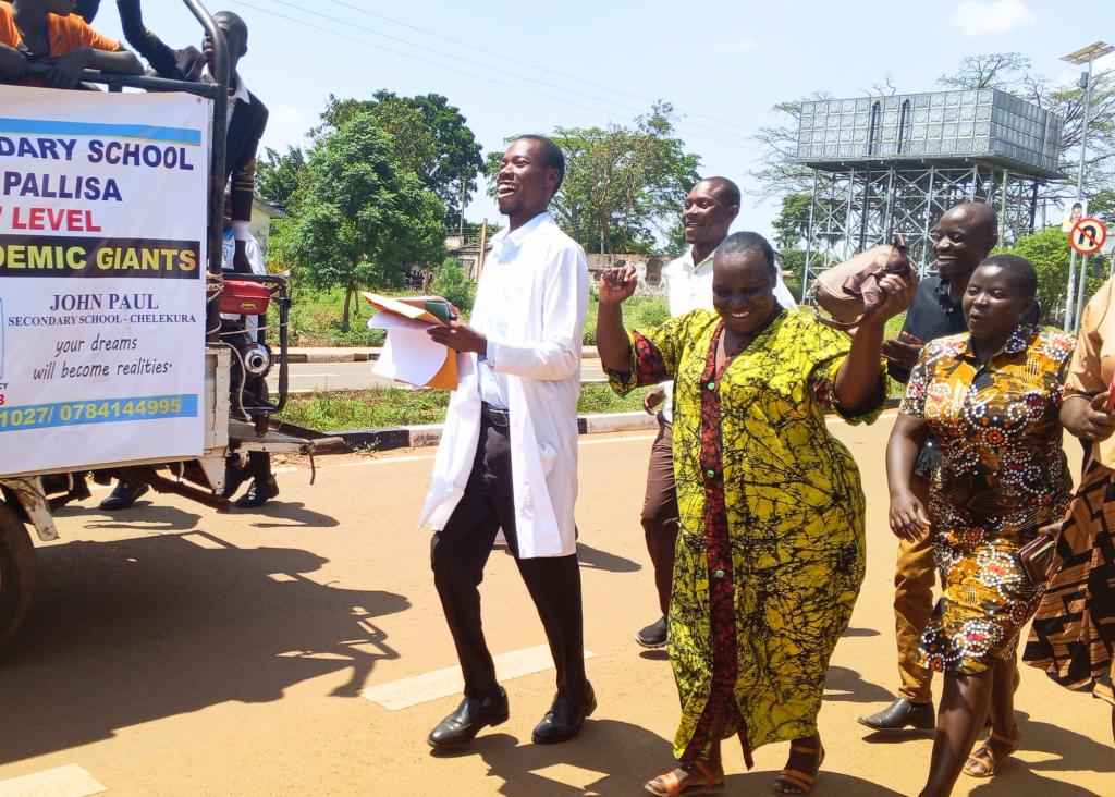 For a fourth year in a row, JPSS is the #1 school in the Pallisa District! A celebration parade was organized through the town of Pallisa – see our students, teachers and parents celebrating this success below.